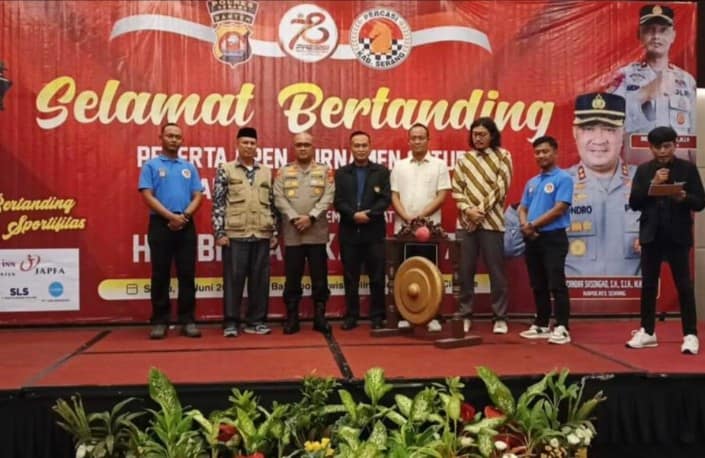 Turnamen catur yang digelar di Ballroom Swiss Bell Hotel dibuka langsung oleh Kapolres Serang AKBP Condro Sasongko dengan ditandai pemukulan gong, Kejuaraan catur ini diikuti 223 peserta dari berbagai tingkatan usia mulai dari pelajar tingkat sekolah dasar dan umum kegiatan ini di selenggarakan pada, Sabtu 29 Juni 2024.