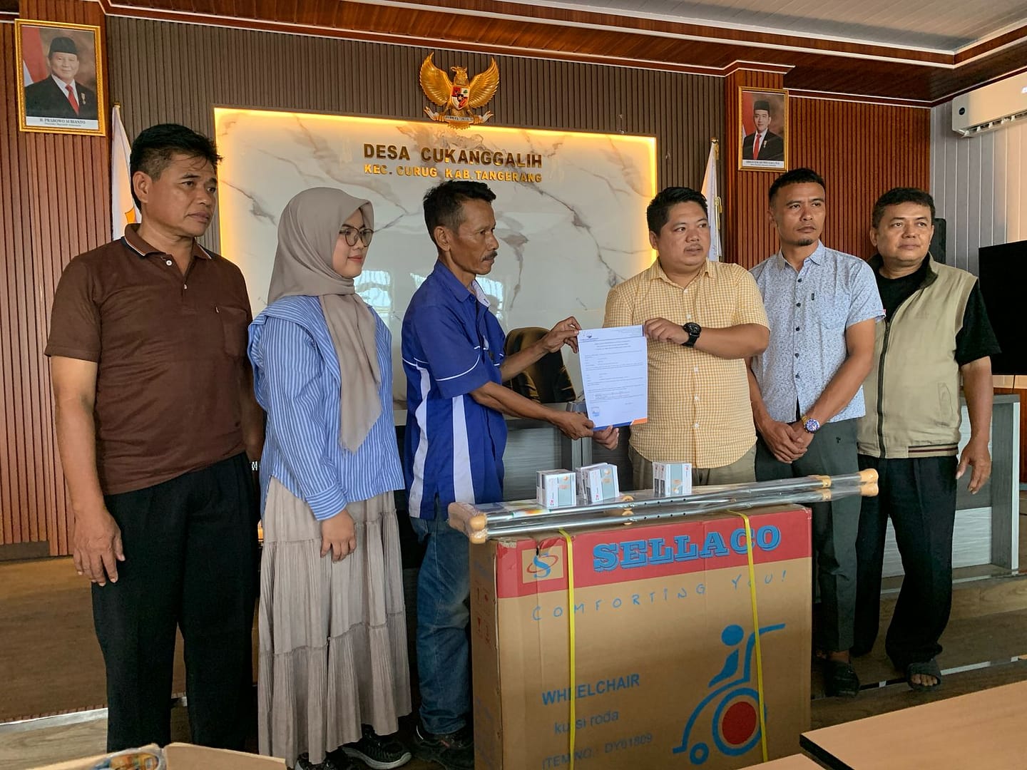 TANGERANG, kabarrakyat.co.id, — Kepala Desa Cungkanggalih Kec.Curug Menerima bantuan Kursi Roda dan Tongkat sekaligus alat pendengar dari P.T.Sinar laut biru logam perkasa jaya.