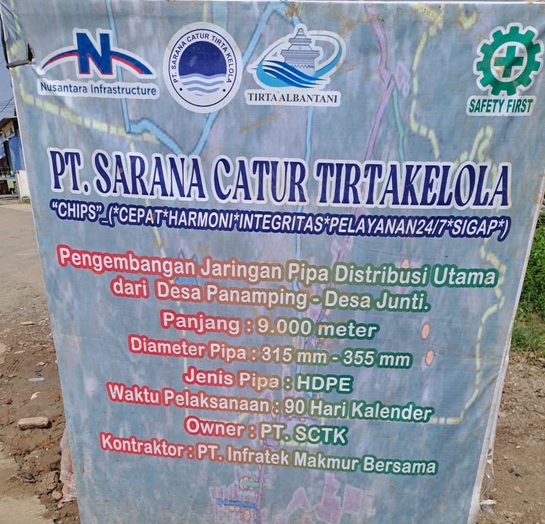 Sedangkan, untuk peran keterlibatan PT. Nusantara Infrastruktur, dan PDAM Tirta Al bantani kabupaten serang tidak ada keterangan, mengenai keterlibatannya dengan proyek pelaksanaan pengembangan distribusi jaringan Pipa utama tersebut, dan untuk logo Safety First K3 dapat disimpulkan sebagai bentuk komitmen atas kepatuhan pihak perusahaan terhadap aturan yang mewajibkan badan usaha berbadan hukum PT. utamakan Kesehatan dan Keselamatan Kerja ( K3 ).